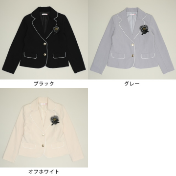 地味になりがちな黒ジャケットですが、配色の白いラインが、襟まわりとポケット口に入っているので、きちんと見えしながらも、可愛い印象になります。